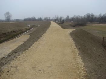 Zakres robót obejmuje wykonanie robót pomiarowych i ziemnych -  uszczelnienie korpusu i podłoża wału poprzez wykonanie przesłony przeciwfiltracyjnej bentonitowo – cementowej w osi wału (o szerokości ok. 30 - 35 cm, o zmiennej głębokości), podwyższenie istniejącego obwałowania od km 0+000 do km 0+716 na długości L=716 mb, ), uzupełnienie nasypu korpusu obwałowania po wykonaniu przesłony, plantowanie skarp, dna rowów, korony nasypu, likwidację 3 śluz wałowych, remont 2 śluz wałowych, humusowanie i obsiewu skarp wału i skarp rowów, utwardzenie korony wału wraz z przejazdami wałowymi, odtworzenie punktów osnowy geodezyjnej i słupków hektometrowych.