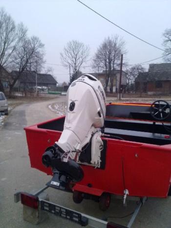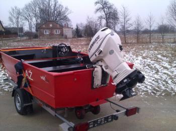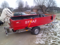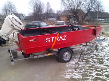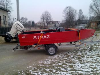 Dostawa łodzi płaskodennej z silnikiem zaburtowym na przyczepie dla OSP w Dworach II