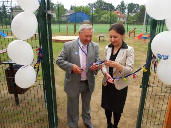 37-500 Jarosław, ul. Poniatowskiego 28, a wartość zrealizowanych prac wyniosła 20.805,72 PLN. W skład placu zabaw wchodzą następujące urządzenia: huśtawka „ważka”- szt 2, huśtawka podwójna z siedziskami ogumowanymi – szt 2, sprężynowiec „konik” i „skuter”, drążki gimnastyczne oraz urzadzenie zabawowe „zuzia” z przeszkodą „wodą” jak również sześcioboczna piaskownica. Otwarcie i udostępnienie do zabawy nowej inwestycji nastąpiło w ramach VI Dni Gminy Oświęcim 3 czerwca 2012 r.