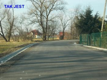 Ponadto na odcinku pomiędzy ul. Kombatantów i ul. Do Pomnika wykonano poszerzenie jezdni do 5 m, a w rejonie boiska sportowego i placu zabaw powstał teren utwardzony z przeznaczeniem pod miejsca postojowe dla samochodów osobowyc
