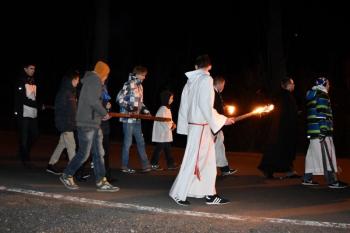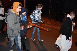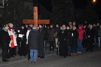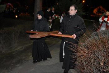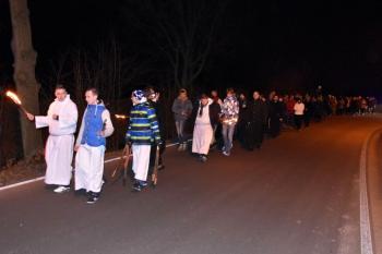 Po mszy świętej, której przewodniczył proboszcz miejscowej parafii o. Piotr Cuber, ulicami sołectwa wyruszyła Droga Krzyżowa. Modlitewny marsz dobiegł końca przed miejscową szkołą. W tym budynku w latach1941-45 przebywali więźniowie podobozu KL Auschwitz-Harmense. Przy utrzymaniu okolicznych stawów i innych pracach we wsi zginęły setki więźniów.