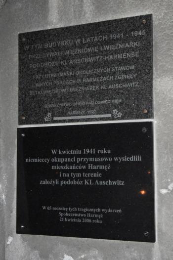 Na przełomie marca i kwietnia 1941 r. hitlerowcy wysiedlili mieszkańców Harmęż oraz okolicznych wiosek. Było to pokłosie decyzji wydanej podczas wizytacji KL Auschwitz przez Reichsführera Heinricha Himmlera. Ten jeden z największych hitlerowskich zbrodniarzy zarządził rozbudowę obozu macierzystego, budowę nowego obozu Birkenau oraz zagospodarowanie obszaru przyległego do obozu. W ten sposób skazał na poniewierkę mieszkańców Zasola, Babic, Broszkowic, Brzezinki, Pław, Harmęż, Rajska, Boru, Bud i częściowo Brzeszcz.