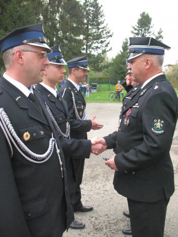 Następnie uczestnicy po uformowaniu szyku na czele ze strażakami udali się pod Obelisk „Orzeł Niepodległości” gdzie poszczególne delegacje złożyły kwiaty dla uczczenia bohaterów. Po złożeniu kwiatów nastąpił ponowny powrót przed Estradę gdzie OSP przedstawiło paradę Strażacką. Wręczono zasłużonym strażakom awansy na wyższe stopnie służbowe.