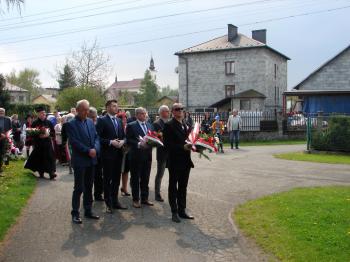 Rozpoczęła się parada Strażacka, przemarsz, meldunki odegranie hymnu narodowego oraz wciągnięcie flagi na maszt. Po czym Sołtys Władysław Zaliński wygłosił referat dotyczący Konstytucji 3 Maja i jej znaczenia dla historii Polski. W wielkim skrócie można przedstawić znaczenie tego referatu: