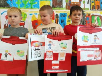W tygodniu poprzedzającym Święto Niepodległości Polski, grupa Kotki wzięła udział w kilku zajęciach, których tematem była "Polska moja ojczyzna". Przedszkolaki wyklejały postacie w strojach regionalnych, kodowały, przypominały symbole narodowe, konstruowały i grały w grę "Polska", malowały na temat "Piękna nasza Polska", tworzyły "Walizkę małego patrioty". Ponadto wysłuchały kilku opowiadań związanych z historią Polski, słuchały piosenek "Polak mały", "Co to jest niepodległość". Wszystkie te zajęcia były dla Kotków doskonałą okazją do kształtowania miłości do ojczyzny, a także do budowania poczucia tożsamości narodowej.