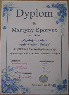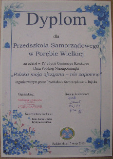 17 maja przedszkolaki z grupy "Marynarzy" reprezentowały nasze przedszkole w Gminnym Konkursie - "POLSKA MOJA OJCZYZNA - NIE ZAPOMNĘ"