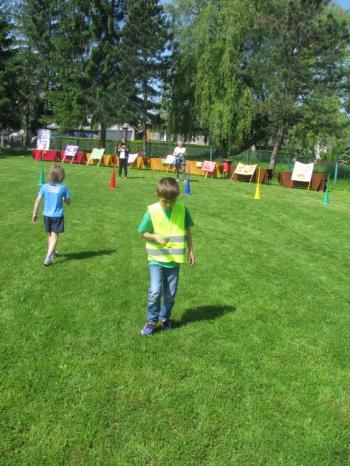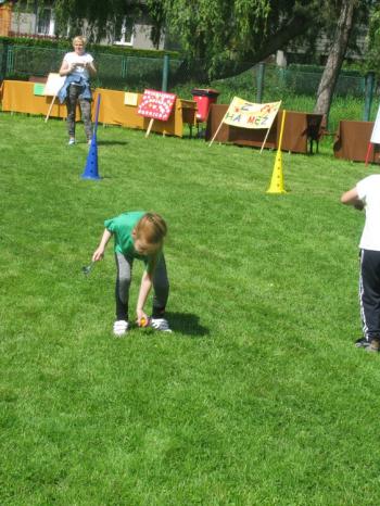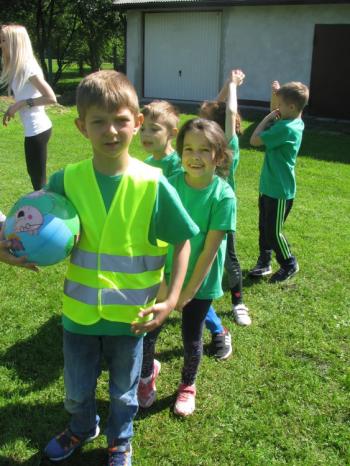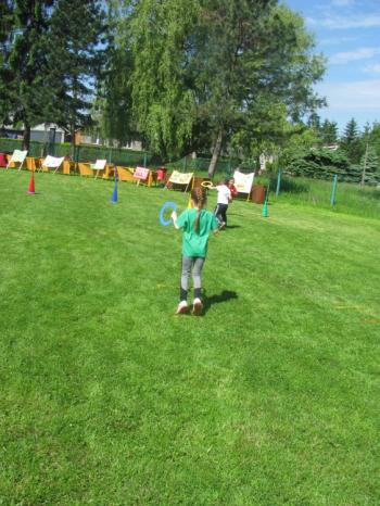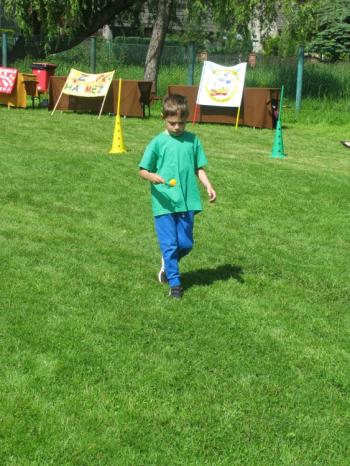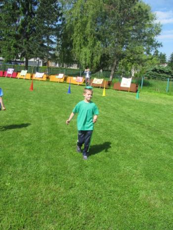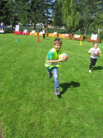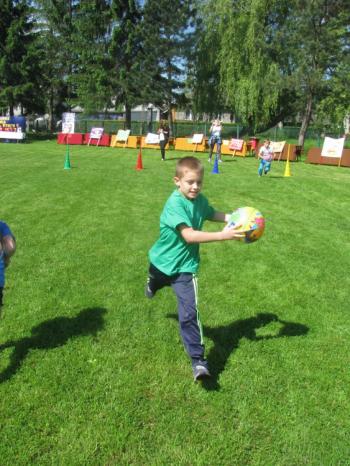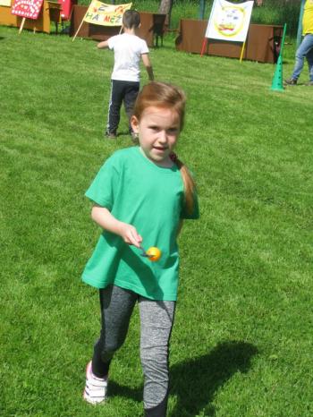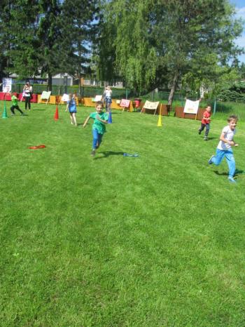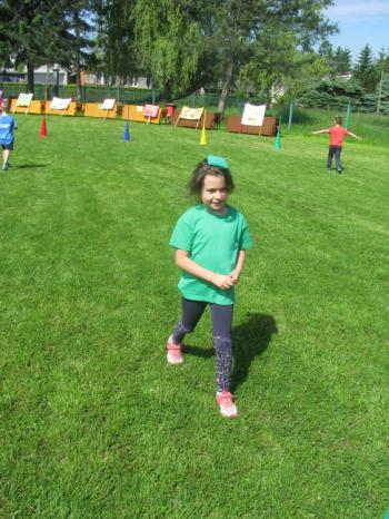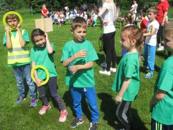 Przedszkolaki rywalizowały ze sobą w różnych konkurencjach m.in. maszerowały z woreczkiem na głowie, biegły z piłką, przenosiły piłeczkę na łyżce, przeskakiwały przez przeszkody. Wszyscy starali się wykonać zadanie jak najlepiej, najdokładniej w myśl zasady „fair play”. Rywalizacja przebiegała w przyjemniej atmosferze.
