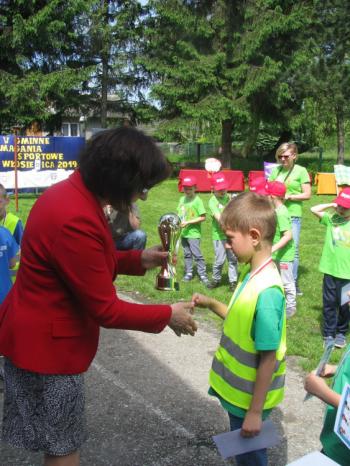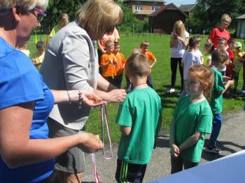 Jury podsumowało zmagania przedszkolaków. Wręczyło uczestnikom medale i pamiątkowe dyplomy. Każde przedszkole otrzymało puchar.