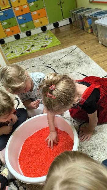 • "Słoneczka" - Zabawy sensoryczno-plastyczne z rozpoznawaniem koloru czerwonego.