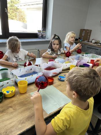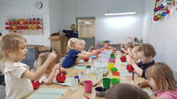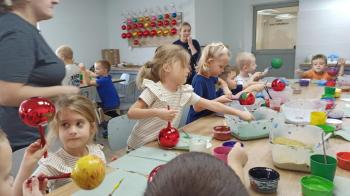 Kaczuszki oraz Żabki 5 listopada były na wycieczce w parku rozrywki Ampa w Wieliczce. Przedszkolaki spędziły ten wspaniały dzień łącząc aktywną zabawę na sali zabaw z twórczym działaniem na zorganizowanych warsztatach malowania ozdób szklanych. Podczas warsztatów samodzielnie tworzyły własne, wyjątkowe dekoracje choinkowe. Wyjazd sprzyjał rozwijaniu kreatywności, motoryki małej oraz integracji między dziećmi. Wykonane prace stały się piękną pamiątką z tego pełnego wrażeń dnia. |