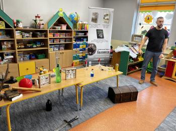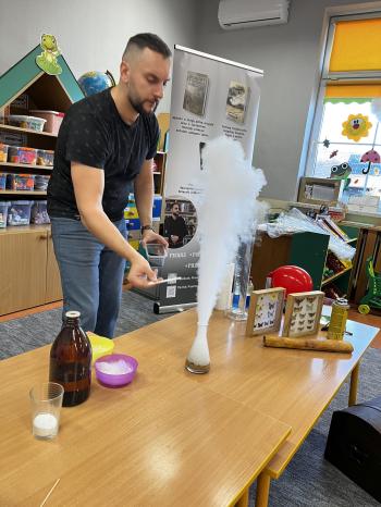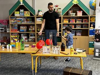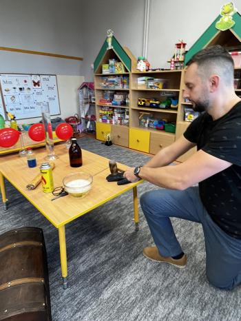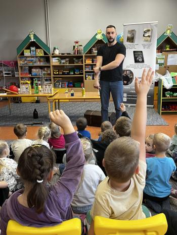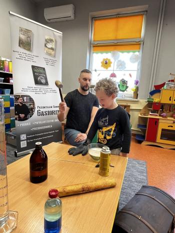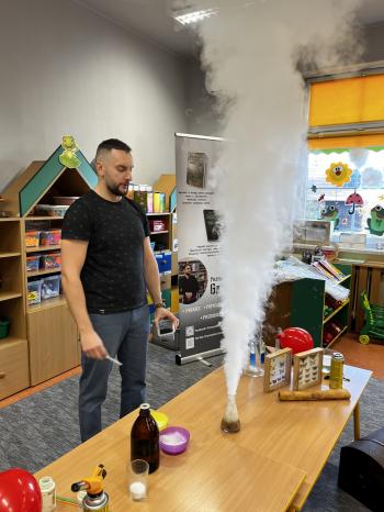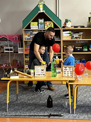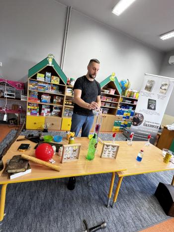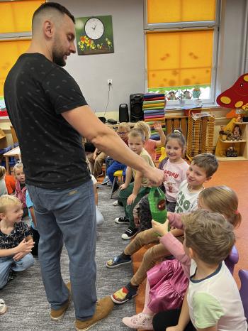 12 listopada przedszkolaki uczestniczyły w warsztatach „Fabryka kreatywności” sponsorowanych przez Radę Rodziców. Warsztaty prowadzone przez pana P. Gąsiorka popularyzatora nauki były inspirujące i wzbudziły ogromną ciekawość dzieci. Mali odkrywcy brali udział w eksperymentach, podczas których doświadczali magii. „Zmuszało” to dzieci do przemyśleń i szukania rozwikłania zagadki pt. „Jak to się mogło stać?”. Dziękujemy Radzie Rodziców za organizację warsztatów. |
