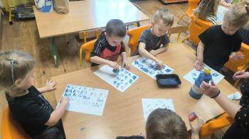 W dniu 25 lutego choć w naszym przedszkolu dzieci przyszły ubrane w różnych odcieniach czerni było bardzo kolorowo i wesoło. Stało sia tak z powodu kolejnego Dnia aktywność tym razem w kolorze czarnym. Dzieci z oddziałów poprzez różne zabawy tematyczne i ruchowe zagłębiły się w tym kolorze.