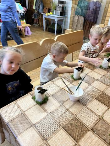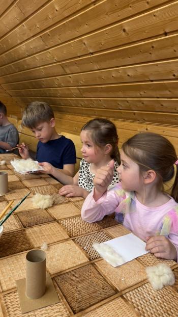 18 marca 2026 r. dzieci z oddziału „Żabek” wzięły udział w warsztatach wielkanocnych w Skansenie – Zagroda – Wsi – Pszczyńskiej pt. „Kto ma owce, ten ma co chce” – podczas których odbyła się pogadanka na temat tradycji związanych ze Świętami Wielkanocnymi.  Samodzielne stworzenie wełnianych owieczek lub mydełek w kształcie owieczki lub pisanki.