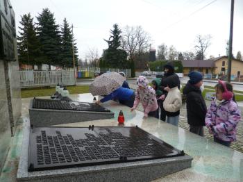 W dniu 10.11.2025 roku uczniowie klas I-III Szkoły Podstawowej w Porębie Wielkiej wraz z wychowawcami w trakcie zajęć świetlicowych udali się pod pomnik mieszkańców naszej miejscowości poległych w czasie I i II wojny światowej.