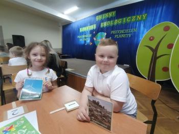 Przedszkolaki z grupy "Tropiciele" Antoś Gwóźdź i Asia Gabryś brali udział w Gminnym Konkursie Ekologicznym "Przedszkolak Przyjacielem Zielonej Planety". Konkurs został zorganizowany przez Przedszkole Samorządowe we Włosienicy. Dzieci pochwaliły się swoja wiedzą i wspaniale poradziły sobie z przygotowanymi zadaniami, zostały nagrodzone pięknymi upominkami. Bardzo dziękujemy organizatorom za mile spędzony czas.
