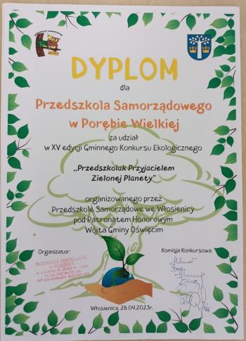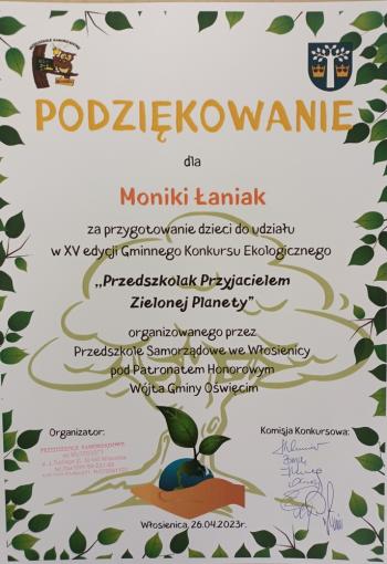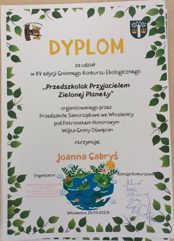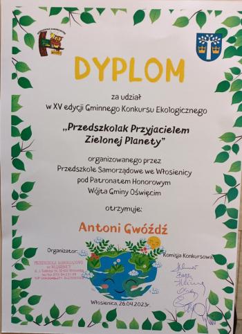 Gminny Konkursie Ekologiczny "Przedszkolak Przyjacielem Zielonej Planety".