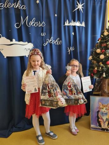 Ninka Drabczyk i Lenka Kolasa z grupy Tropicieli reprezentowały nasze przedszkole na konkursie kolęd i pastorałek organizowanym przez Niepubliczne Przedszkole "Smyk" w Babicach. Dziewczynki zaprezentowały pastorałkę "Skrzypi wóz".